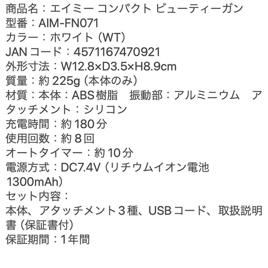 AiMY COMPACT BEAUTY GUN コンパクトビューティーガン(ホワイト)