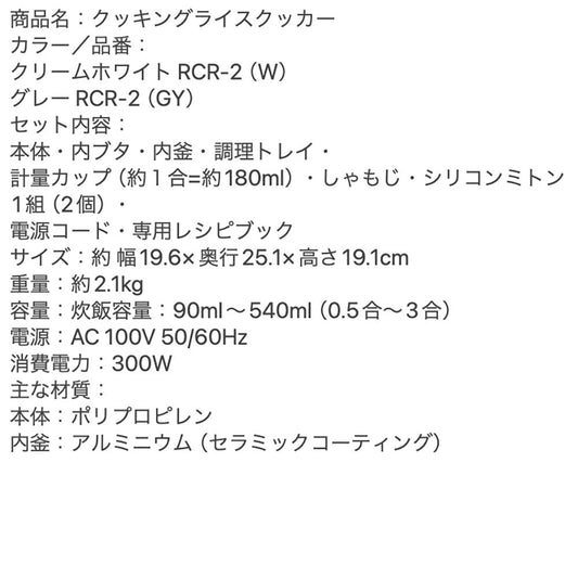 【ギフトカード】recolte(レコルト) クッキングライスクッカー クリームホワイト