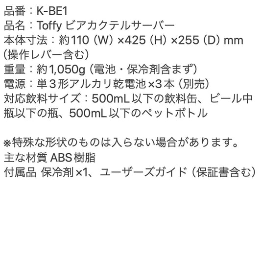 【ギフトカード】Toffy(トフィー)ビアカクテルサーバー リッチブラック
