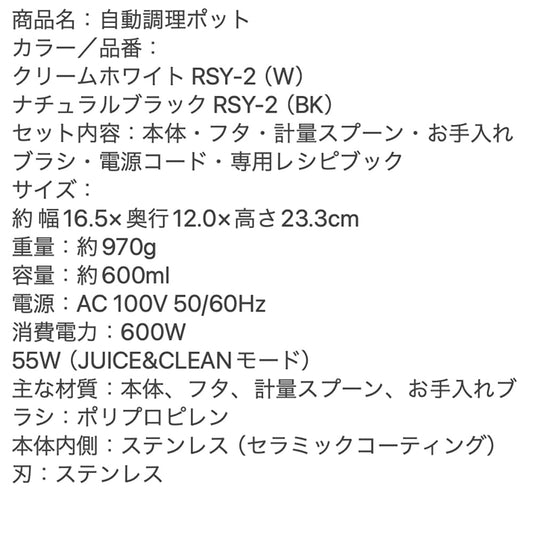 【ギフトカード】recolte(レコルト)自動調理ポット ブラック