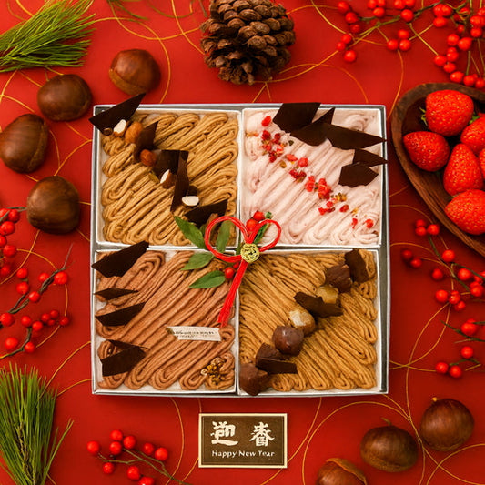 shirokane sweet TOKYO スクエアスイーツモンブランおせち 4種モンブランアソート (山江栗、和栗、ショコラ、べりー)