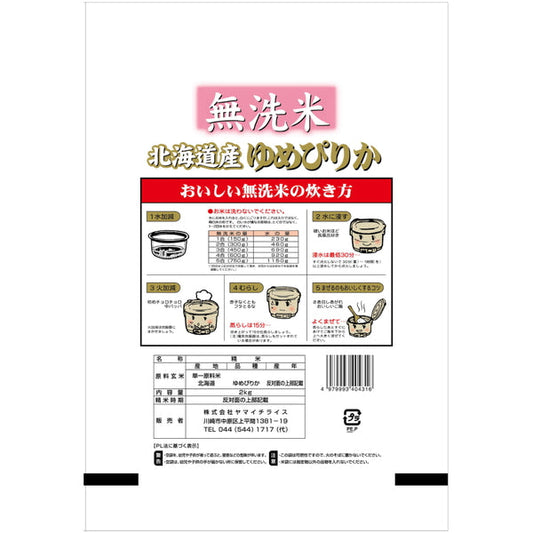 無洗米 北海道産ゆめぴりか 2kg×2袋(合計4kg)