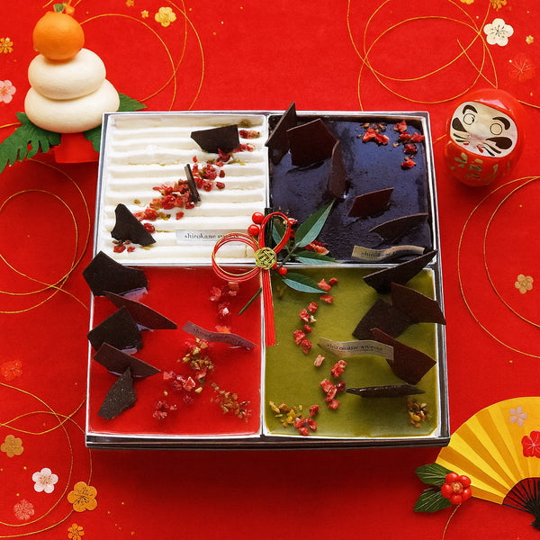 ■美味しい季節のフルーツと、原材料のこだわりがコンセプトのスイーツ専門店「shirokane sweets TOKYO」が作るスクエアスイーツおせち 4種Mixスイーツ。