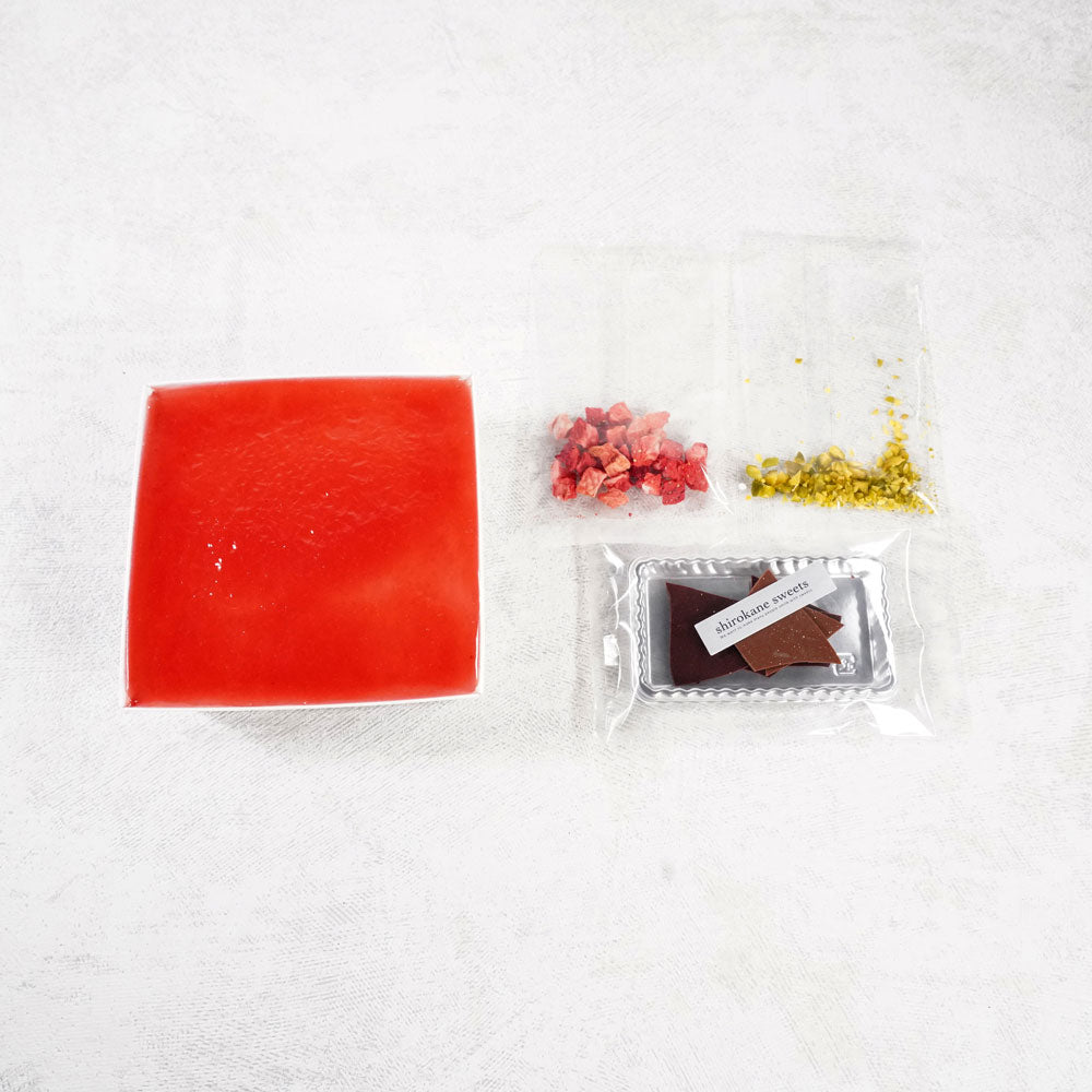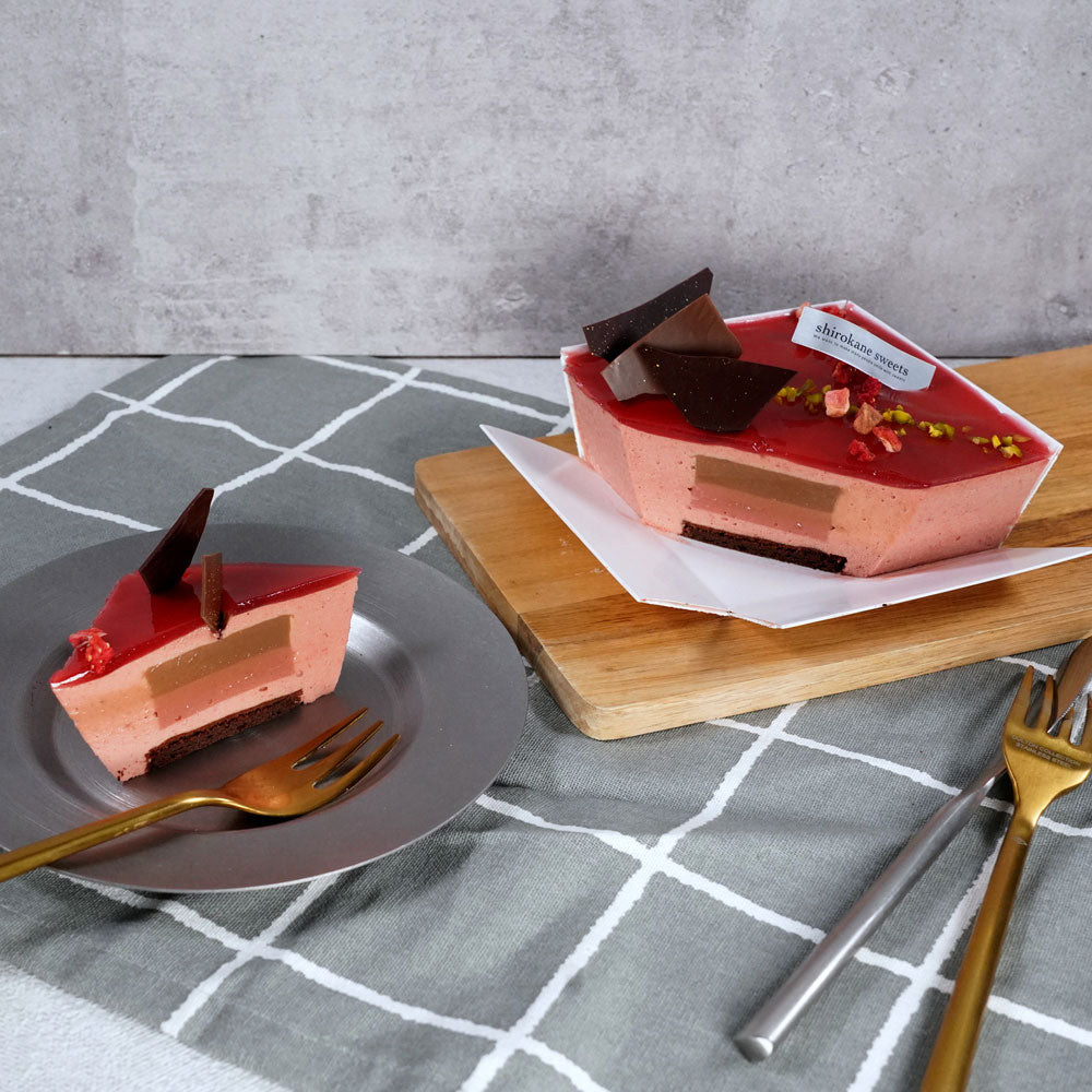 甘みと酸味を楽しんでいただく真っ赤なケーキ。昼下がりのティータイムのお供として、ディナーのドルチェとしてご利用頂くことで贅沢な気分にさせてくれることでしょう。3号サイズのホールケーキとほぼ同じサイズとなり2,3人分となります。素材を生かした白金ミロワール(フランボワーズ)。上品に仕上げたshirokane sweets TOKYOの逸品です。お楽しみください。