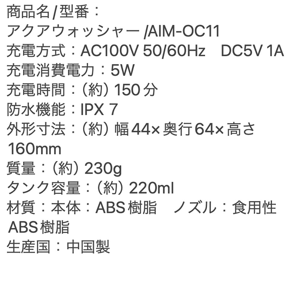 商品名/型番 :アクアウォッシャー /AIM-OC11