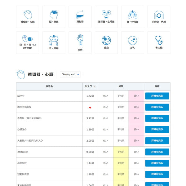 また、肥満やアルコールなど気になる体質情報も詳しく知ることができます。