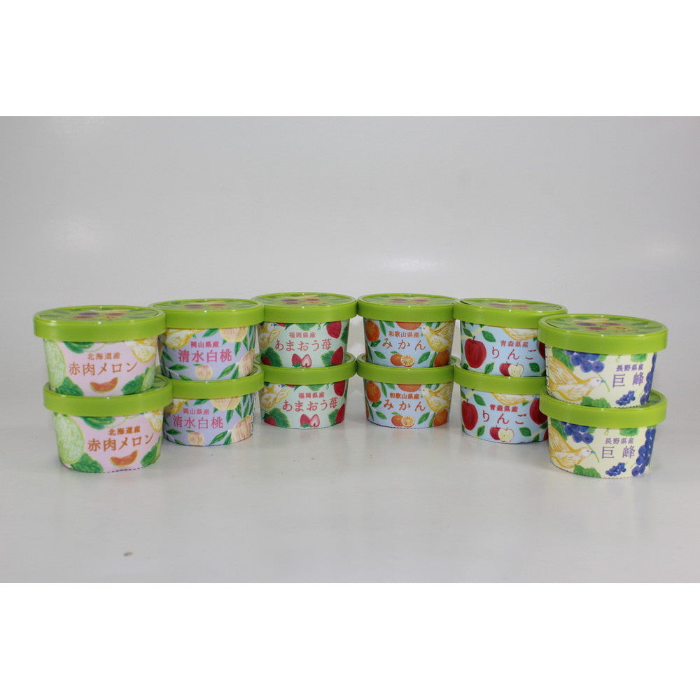 ■内容量:福岡あまおう苺アイス、北海道赤肉メロンアイス、岡山清水白桃アイス、青森りんごアイス、長野巨峰アイス、和歌山みかんアイス各70ml×各2(計12個)