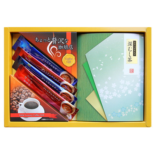 ■甘い香りが特徴のまろやかな味わいのAGFコーヒープレミアムマイルド、しっかりとした苦みとコク深い味わいが特徴のAGFコーヒープレミアムビター。本格的なお茶を急須無しでお楽しみいただけるドリップタイプの深むし茶の詰め合わせです。