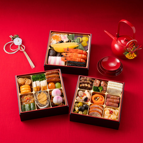 ■国際都市「横浜」のシンボルとして日本有数の超高層ビルである横浜ランドマークタワーの上層部を占めるホテルです。方角や時間によって様々な景観お楽しみいただけ、癒しとやすらぎの空間として真心を込めたサービスを提供しています。ご家族三世帯で楽しめるホテルならではの和洋中三段重。大ぶりの数の子やアワビなど粋な盛り付けも元旦にふさわしい仕上がりです。
