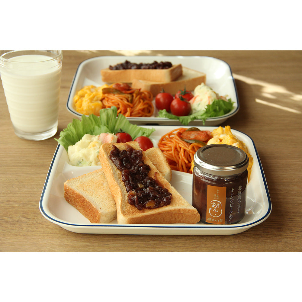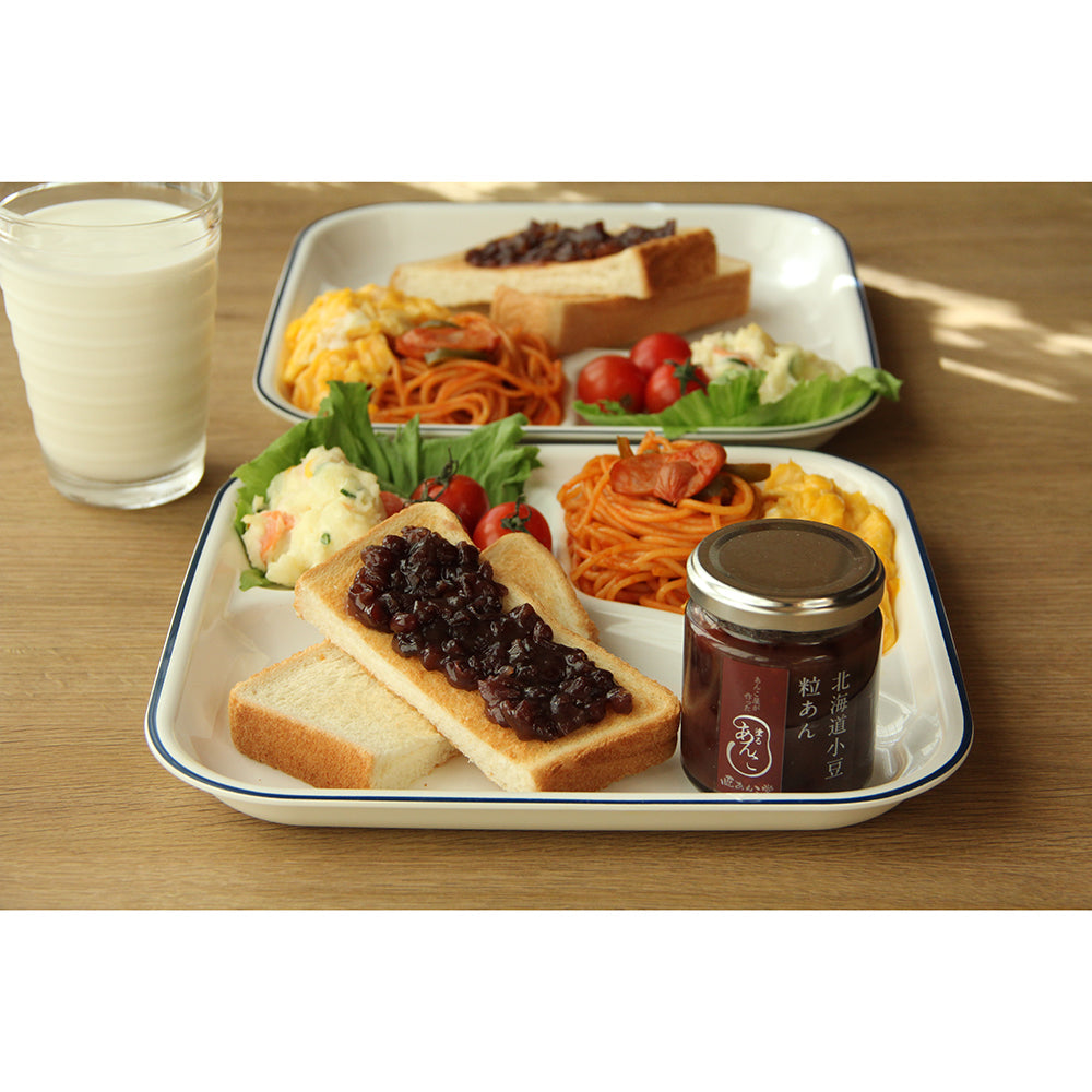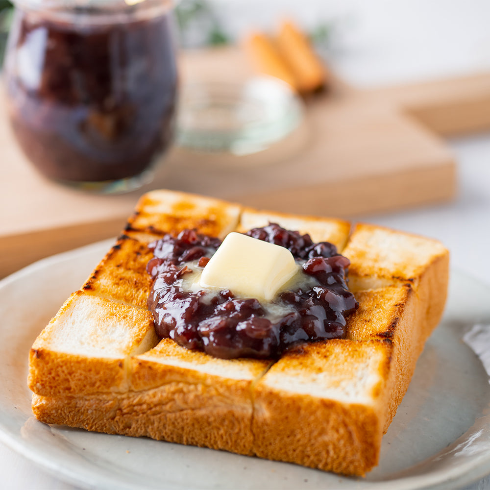 ・小豆:北海道産小豆100%使用。蜜にしっかりと漬け込んだ小豆の蜜漬けを使用し、小豆の粒を壊さぬよう丁寧に練り上げました。トーストに塗りやすく程良いペースト状に仕上げました。