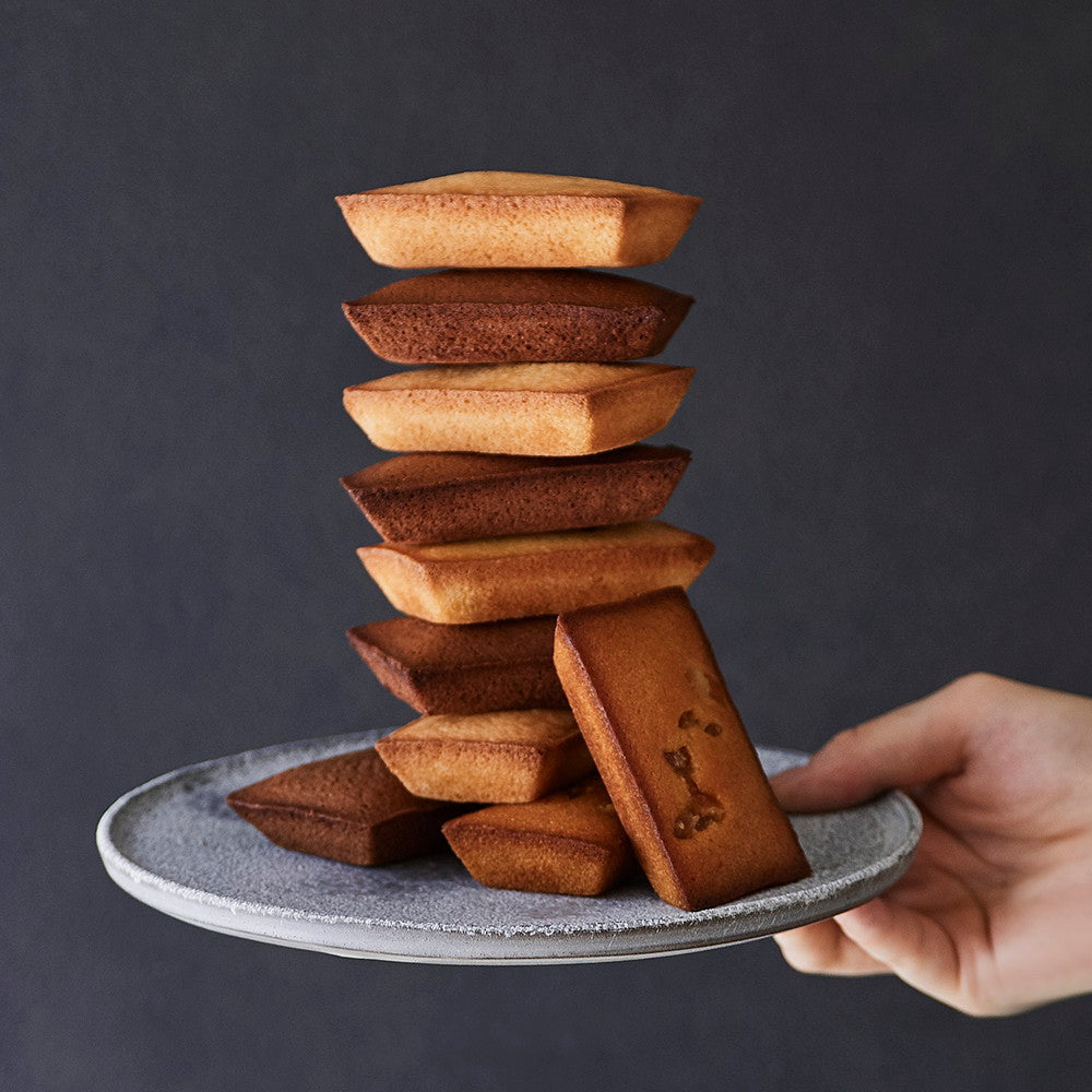 アーモンドプードルの風味豊かなナチュールと、ガトーショコラのような濃厚な味わいのショコラ、フィナンシェ2種のフィナンシェの詰合せ。