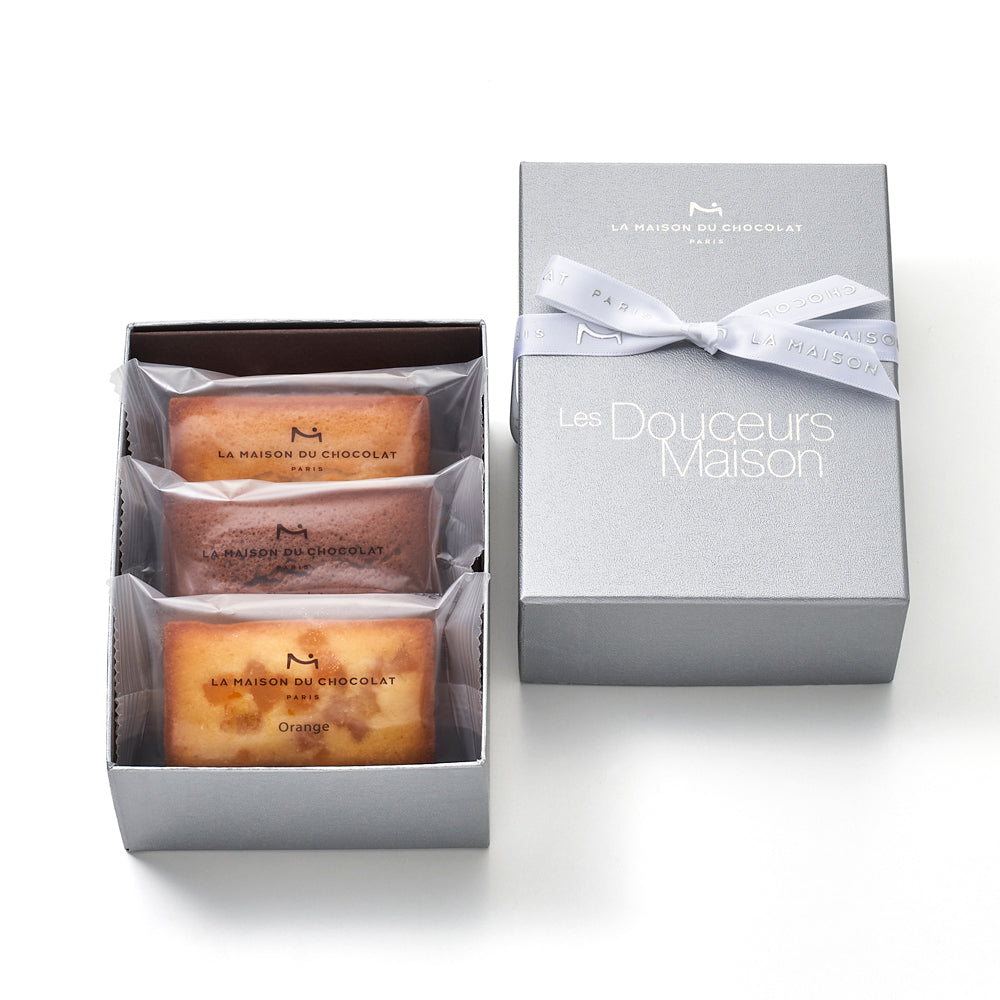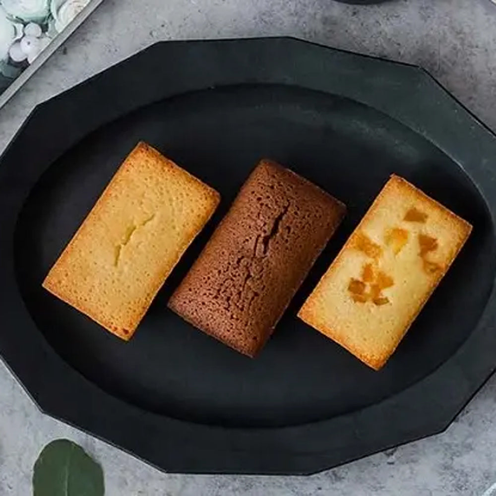 アーモンドプードルの風味豊かなナチュール、ガトーショコラのような濃厚な味わいのショコラ、オレンジコンフィを混ぜ込んだオランジュ、合計3種類をお楽しみいただける詰合せ。