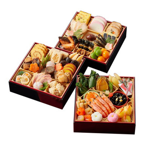 有馬温泉の有名旅館「旅篭(はたご)」監修の和風3段重。館主の太田忠道は勲章受章料理人として幅広く活躍をしております。
