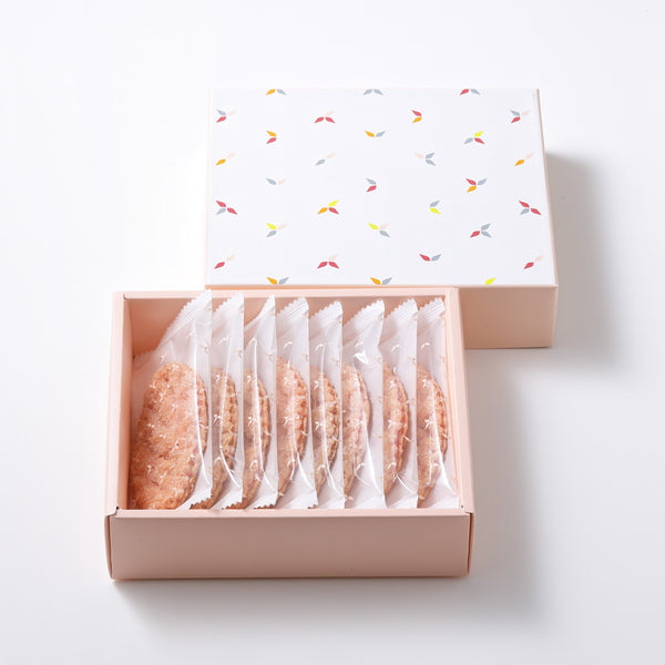 バター風味のパイの上に、ローズの香りが漂うピンク色のザラメをトッピングした、見た目にも華やかな一品。 サクサクとした食感と上品な甘さはリピートしたくなるおいしさで、贈り物にもぴったりです。
