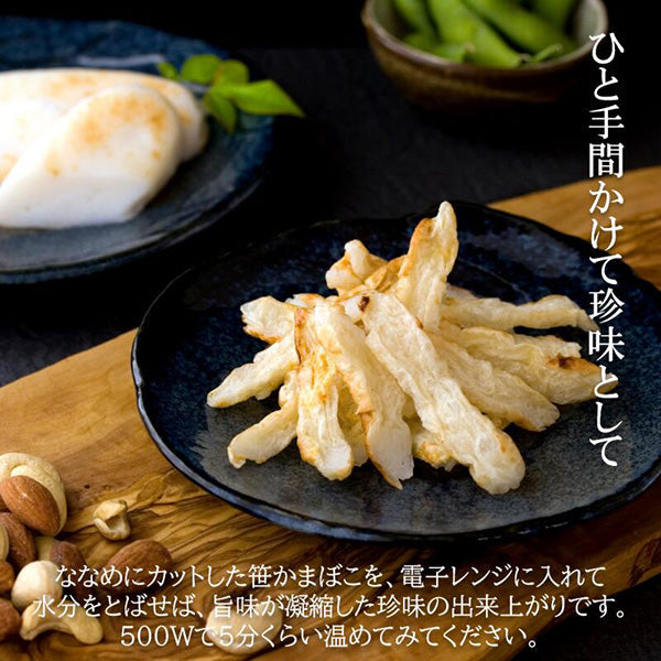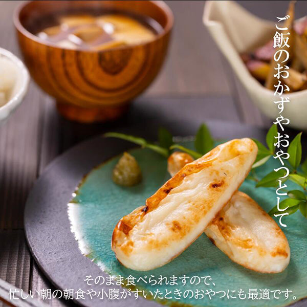 石臼で繊細に練り上げたすり身を、魚肉のしまりやふんわり感を最大限に活かす職人技で丁寧に焼き上げています。