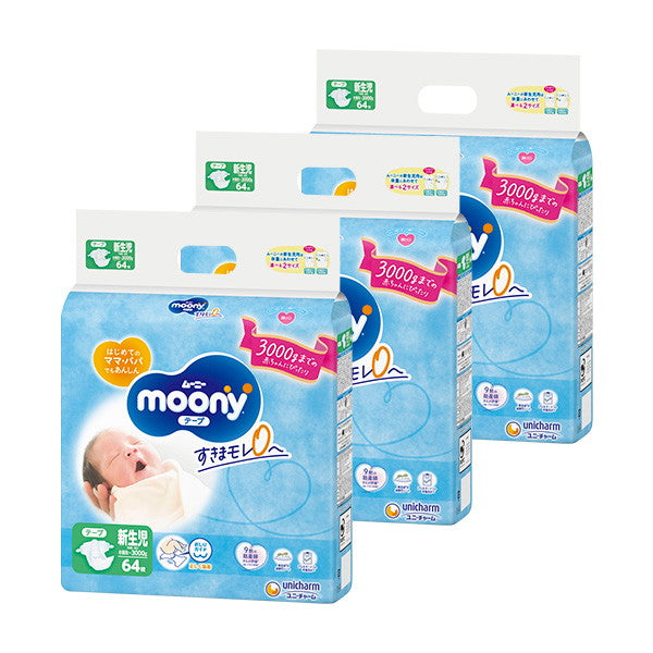 ムーニー新生児 お誕生~3000g テープタイプ 64枚(3袋)