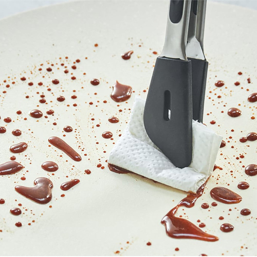 中央に向けてゆるやかにカーブを描く[クッキンググリドルプレート]。テーブルクッキングのライブ感をより一層楽しめるよう、細部まで工夫を凝らしました。アツアツの料理を囲めば、音や香りに心はずむ時間が訪れます。
